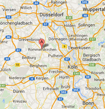 B477: Sie fahren auf der B477 bis zum ersten Kreisverkehr in Rommerskirchen. Nehmen Sie die dritte Ausfahrt Venloer Straße in Richtung Grevenbroich/B59. Nach ca. 1000m biegen Sie rechts in die Doktorgasse ab. Am Ende der Straße (ca. 300 m) fahren Sie direkt auf unser Haus mit den Parkplätzen links vom Haus zu.