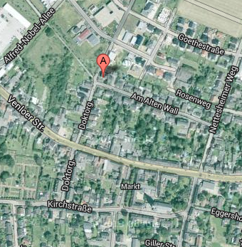 A59: Biegen Sie von der A59 rechts auf die L375 ab. Nach ca. 300m gelangen Sie an einen Kreisverkehr, den Sie an der zweiten Ausfahrt (Venloer Straße) verlassen. Nach weiteren ca. 200m biegen Sie links in die Doktorgasse und folgen der obigen Beschreibung.